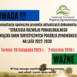 Zapraszamy mieszkańców gmin i powiatów Interesariuszy Strategii, lokalnych partnerów społeczno-gospodarczych oraz sąsiednie gminy i ich związki do udziału w konsultacjach społecznych projektu aktualizacji dokumentu pod nazwą: „Strategia Rozwoju Ponadlokalnego Związku Gmin Turystycznych Pogórza Dynowskiego na lata 2022-2030” – Aktualizacja.